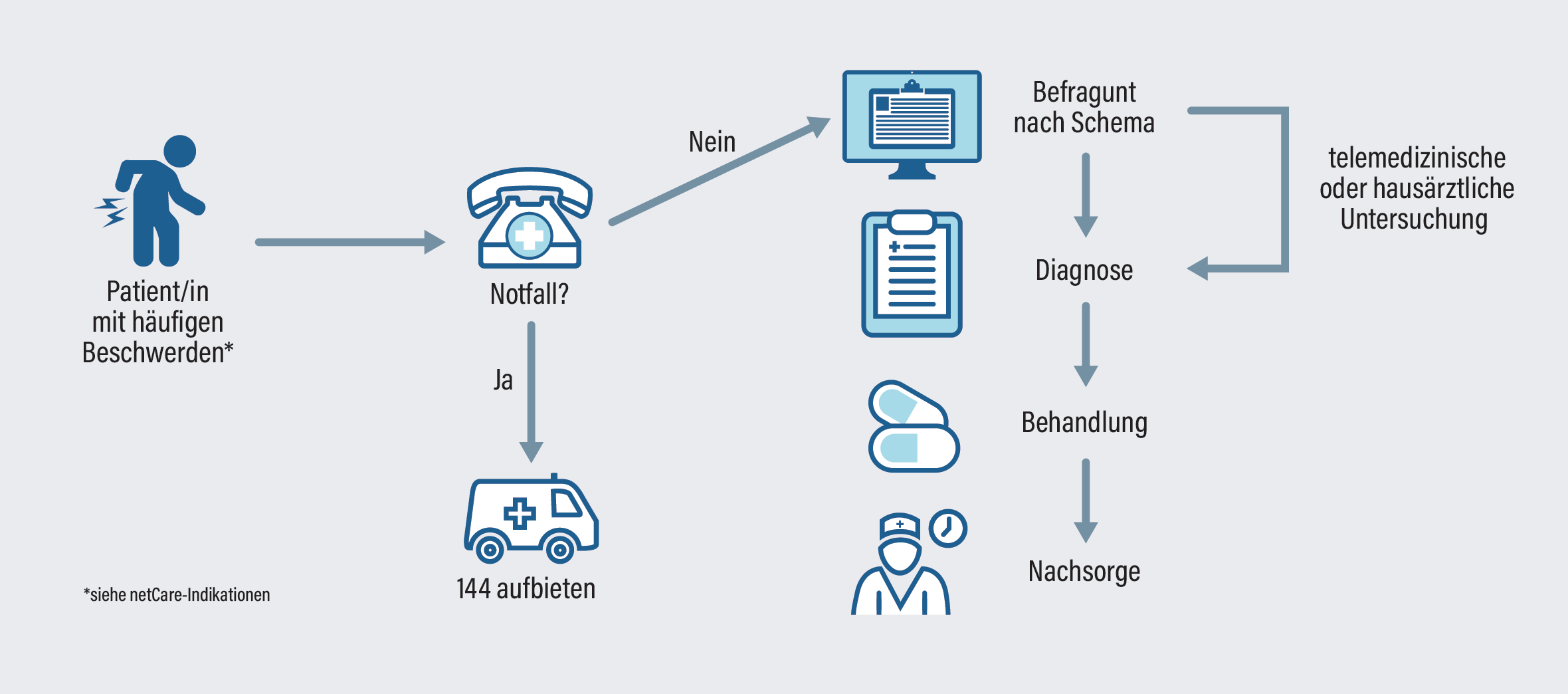 Verklebte Augen, ein Brennen im Magen oder ein Hautekzem: Es gibt zahlreiche gesundheitliche Beschwerden, die immer wieder auftreten und an sich einfach behandelbar sind. Es braucht nicht zwingend eine Ärztin oder einen Arzt, um diese zu diagnostizieren und entsprechende Medikamente abzugeben. Als netCare-Apotheke werden Sie in diesen Fällen zur ersten Anlaufstelle. Statt in die Hausarztpraxis oder ins Spital kommen Kundinnen und Kunden für die Erstberatung zu Ihnen.